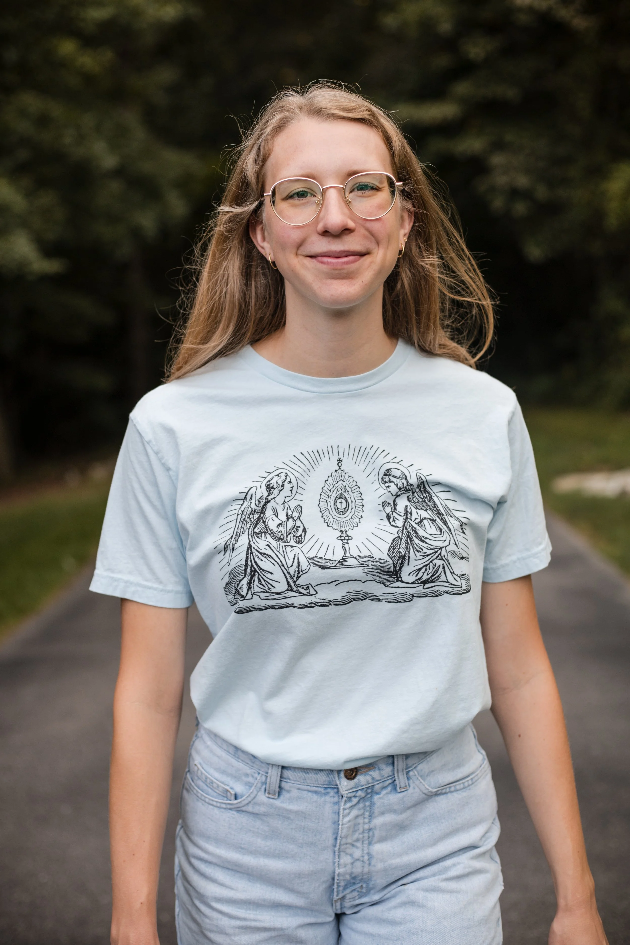 Shop Categories: All Hoodies & Sweatshirts Shirts All | Hoodies & Sweatshirts | Shirts | Eucharistic Monstrance Catholic Tee $25.00 Angels in Eucharistic Adoration Tee $25.00 Angels in Eucharistic Adoration Tee (Heather) $25.00 Angels Venerating Mary's Seven Sorrows Tee $25.00 Eucharistic Monstrance Hoodie $33.00 Seven Sorrows Double Heart Tee $27.00 Seven Sorrows Heart Pocket Tee $36.00 Embroidered Mary Light Silhouette Tee $28.00 Embroidered Mary Floral Tee $28.00 Holy Spirit Dove Pocket Tee $32.00 Embroidered Mary Dark Silhouette Tee $28.00 Saints and Symbols Logo Crewneck $30.00 Saints and Symbols Logo Hoodie $35.00 Lamb of God Tee $25.00 Seven Sorrows Cuffed Tee $28.00 Kids' Eucharistic Monstrance Catholic Tee $23.00 St. Michael the Archangel Cuffed Tee $28.00 Angels in Eucharistic Adoration Hoodie $37.00 St. Michael the Archangel Hoodie from $35.00